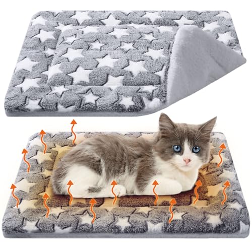 VitalCozy 2 Pack Self Warming Cat Mat Self Heating Pad Bed Reversible Machine Washable Reflects Body Heat Warm Thermal Pet Pad Crate Blanket for Feral and Indoor Cat(Star,22” X 18”)