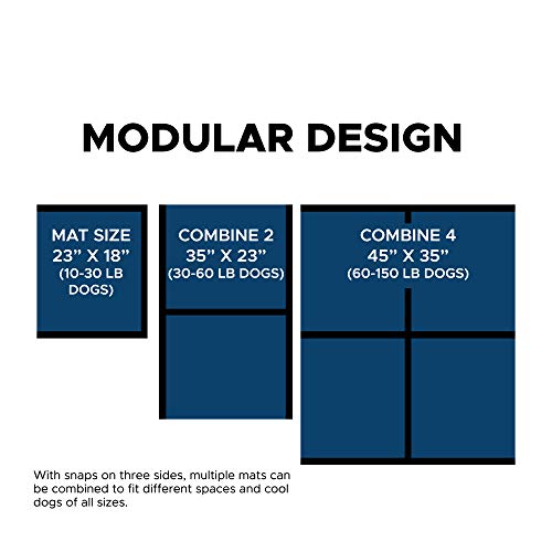 VETERINARIAN APPROVED: The Cooler Dog Hydro Cooling Mat is made with non-toxic, veterinarian-approved materials and contains no harmful chemicals or gels, only pure water. The rip-stop construction ensures durability for both indoor and outdoor use. Each mat has snaps on three sides to connect multiple mats for larger dogs. To maintain it, machine wash the mat cover as needed.