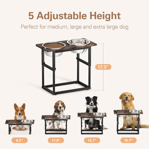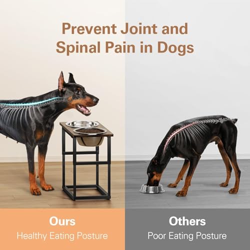 Adjustable Height for Spinal Health: Our elevated dog bowls stand offer five adjustable heights: 8.2”, 11.8”, 13.7”, 15.7” and 17.3”. Protects your dog’s neck and spine from puppy dog to large dog with dog dishes for large dogs, reducing joint pressure and promoting healthier digestion