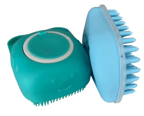 Generic Dog Bath Brush – Pet Grooming Brush with Soap Dispenser – Soft Silicone Dog Shampoo Brush Scrubber – Short Long Haired Dogs and Cats Washing – 2 Count