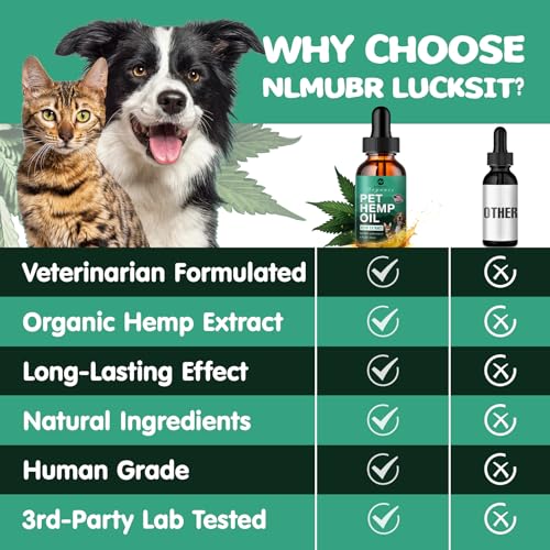 Calm & Relax: Aid calming and soothing anxious or aging pets with Omega-rich cat and dog hemp oil by NLMUBR LUCKSIT. Pet hemp oil drops treats is ideal for pets that hide or become nauseous or aggressive during travel, commotions or due to illness