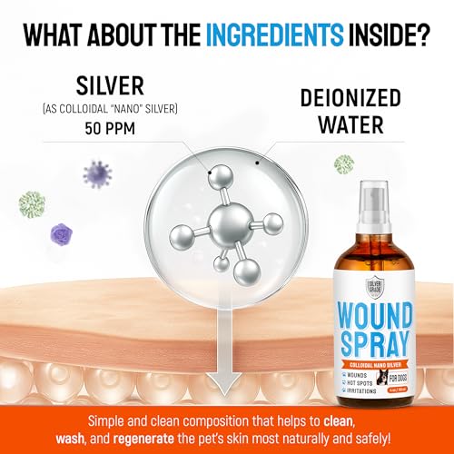 Hot Spot Treatment for Dogs – Silver Wound Spray Helps with Irritation, Bites, Burns, Rashes, Itch, Scratching – Better Use with a Dog Cone – 4 oz