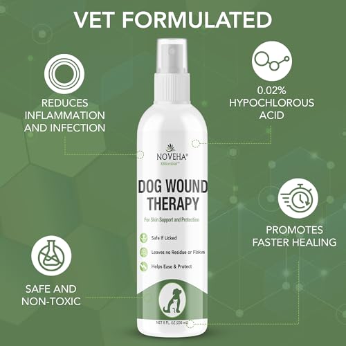 NOVEHA Dog Wound Therapy Spray – Itch Relief & Skin Repair for Dogs – Clean Wounds with Soothing Hypochlorous Acid for Allergies and Other Dog Skin Problems – Immediate Itching Relief – 8 oz Bottle