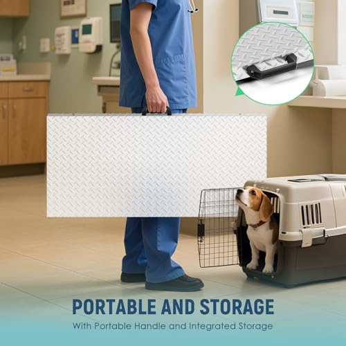 Portable Vet Scale with Integrated Storage and Handle – All accessories for the animal scale are stored in a compartment located on the back of the platform. It also comes with a handle, allowing you to carry it by hand, making it very portable.