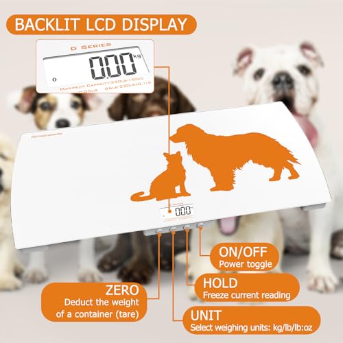 Digital Weighing Scale for Dogs Cats Puppies, Vet Scale, Scale for Animals Pets, 330lb x 0.1lb, Veterinary Scale, 33 x 19in Wide Platform, 8mm Tempered-Glass