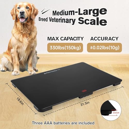 Helsevesen Medium-Large Breed Veterinary Dog Scale, Digital Pet Scale with 30 x 20 inch Tempered Glass Platform with Anti Slip Sticker, 330 Lb Capacity