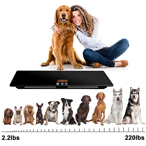 ONE-MI Dog Scales for Large Breed – Heavy Duty 220 Pounds Postal Digital Veterinary Dog Scale, Precision ±0.02lb, Tempered Glass Platform for Animals Packages Luggage, L(25.5inches), Black