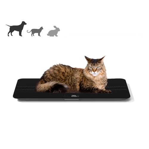MEDIUM SIZE, TARE MEASUREMENT FUNCTION: The medium pet scale is composed of a tempered glass platform (27 x 13 inches), which is used to weigh pets from small to medium. You only need to press the [Tare] button to subtract the excess weight and weigh your pet