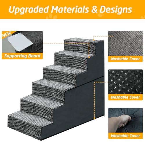 28″ H Dog Stairs for Small and Medium Dogs 6-Step Ramps for High Beds and Couch Non-Slip Extra Wide Pet Stairs for Old Dogs and Puppy and Cat – Stable & Durable with Machine Washable Cover Indoor
