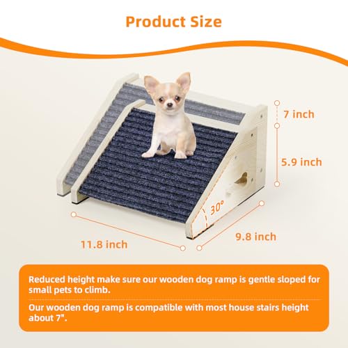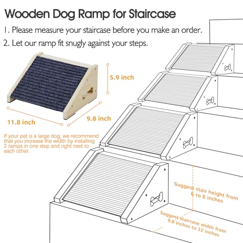 Suitable for most staircases & Care for your pets: Our small dog ramp size is 11.8*9.8*5.9 inches (L*W*H) and is compatible with most stairs heights (most around 7 inches) at home. Please measure your stair height before choosing stair ramp