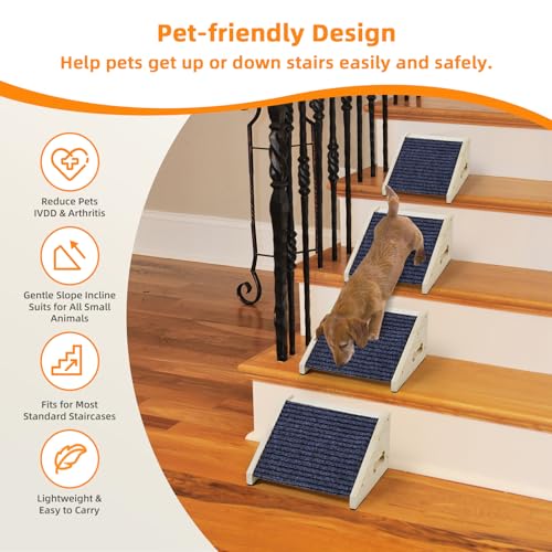 4 Pack Wooden Dog Ramp for Stairs Suits for Small Medium Dogs Cats, Pet Steps Stairs for Staircase Stairs with Anti-Slip Bottom for Dogs Cats Gray, Need Installation