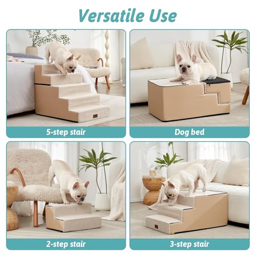 Widened Pet Stairs: The dog steps feature a widened design 4 inches broader than standard dog stairs, offering enhanced stability while accommodating the needs of small and medium dogs, the extra width provides a safer climbing space for pets. With 5 tiers of height, it allows your pet to easily reach elevated areas