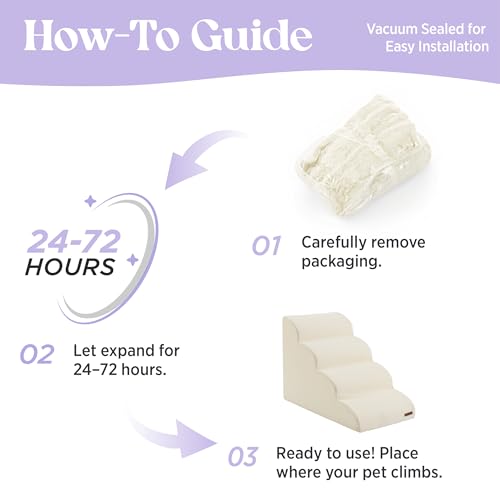 Convenient & Easy to Use: Thoughtfully designed with your furry friend’s needs in mind. A non-slip bottom featuring rubber dots ensures secure footing, while the handy built-in handle allows you to effortlessly move the ramp as needed. Note: the ramp arrives vacuum-compressed and requires no assembly. Simply give it 24-72 hours to fully expand and offer the utmost comfort for your pets.