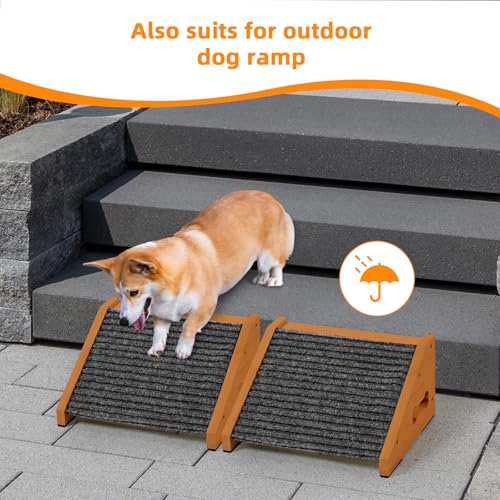 Wooden Dog ramp for Stairs 4 Pack (Brown, S: 11.8 * 9.8 * 5.9 inches)