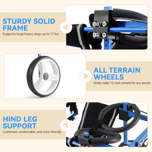 Dog Wheelchair for Back Legs Large up to 77lb, Adjustable for Dysplasia & Arthritis Weak Rear Legs Dogs – Blue
