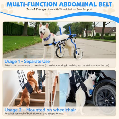 【EXCLUSIVE DESIGN】Lokshun dog wheelchair for back legs features a versatile abdominal belt that can be used on the wheelchair to distribute weight and reduce pressure on the spine and hips. It also works independently to assist your dog with getting in/out of vehicles or climbing stairs. The reflective strips on the belt increase visibility during night walks for added safety