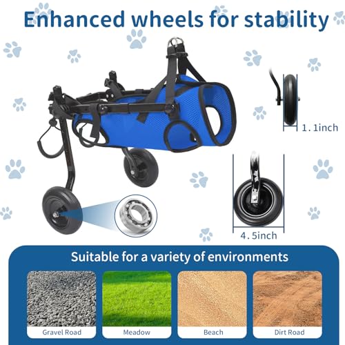 Dog Wheelchair for Back Legs – Lightweight Adjustable Rear Wheels Mobility Cart for Disabled & Senior Dogs, Hind Legs Support