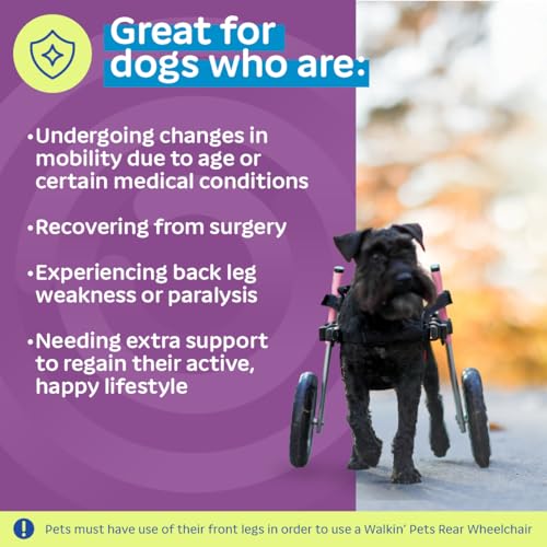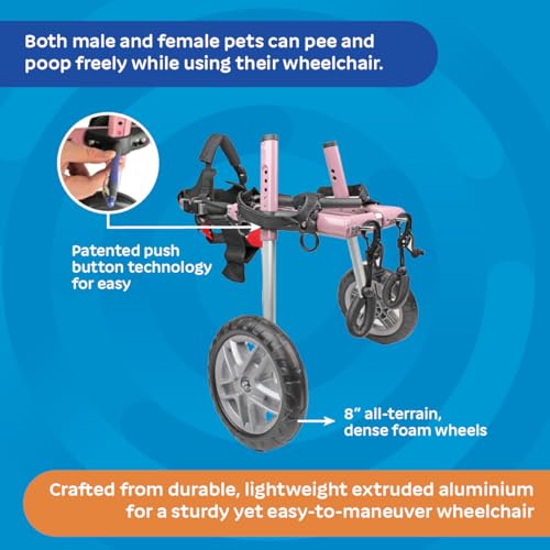 Walkin’ Wheels Small Dog Wheelchair, Lightweight Dog Wheelchair for Back Legs, 15-25 lbs, for 12-15 inches Leg Height – Pink