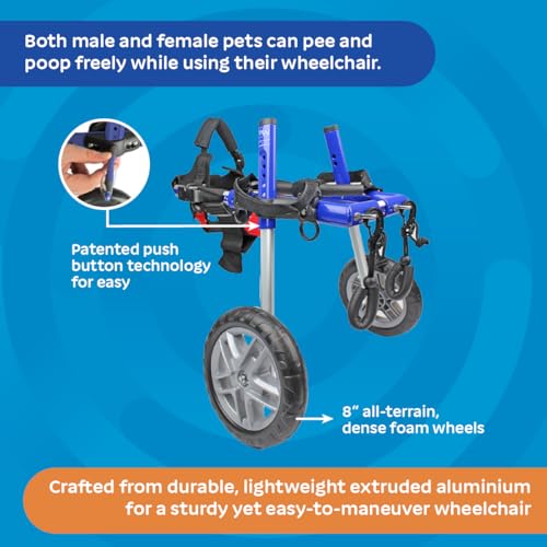 Walkin’ Wheels Small Dog Wheelchair, Lightweight Dog Wheelchair for Back Legs, 15-25 lbs, for 6-8 inches Leg Height – Blue