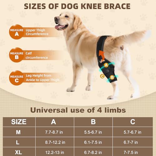 This dog knee joint brace is designed for dogs with ACL/CCL injuries, arthritis, and pain relief. It provides comfortable support, restricts joint bending, aids muscle rehabilitation, post-surgery aid recovery, arthritis osteoarthritis, and minimizes the risk of further injury
