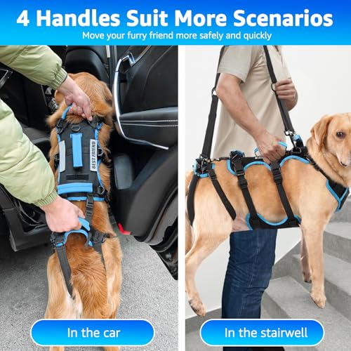 【Enhanced Mobility & Comfort – Dog Support Harness for Back Legs】: Equipped with 4 strategically placed handles (front and back), this dog carrying harness provides multiple lifting and rotation options, making it ideal for a variety of scenarios. The 6 adjustable straps help distribute force evenly, reducing strain on both you and your dog. Perfect as a dog stair helper or for lifting your dog in and out of vehicles.