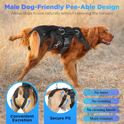 【Male Dog-Friendly Pee-Able Design】Specially designed pee-able opening allows male dogs to urinate naturally without removing the harness, while also keeping all dogs cleaner and more comfortable during bathroom breaks. This smart dog mobility harness prevents fabric staining, reduces odor, and eliminates frequent washing, making daily walks and recovery care stress-free.