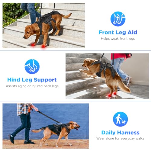 【Flexible Support for Every Need】This versatile dog lift harness adapts to your dog’s changing condition. Use it as front leg support for weak forelegs, add the rear section for hind leg assistance in aging or injured pets, or detach the rear strap and wear the front harness alone as a daily dog harness. A reliable mobility aid for senior dogs, arthritis, hip dysplasia, and post-surgery recovery.