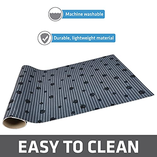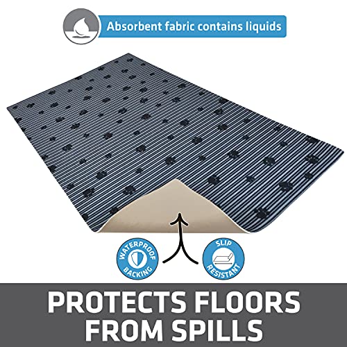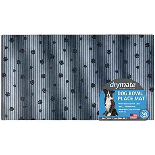 Drymate Pet Bowl Placemat, Dog & Cat Food Feeding Mat – Absorbent Fabric, Waterproof Backing, Slip-Resistant – Machine Washable/Durable (USA Made) (16” x 28”) (Grey Stripe Black Paw)