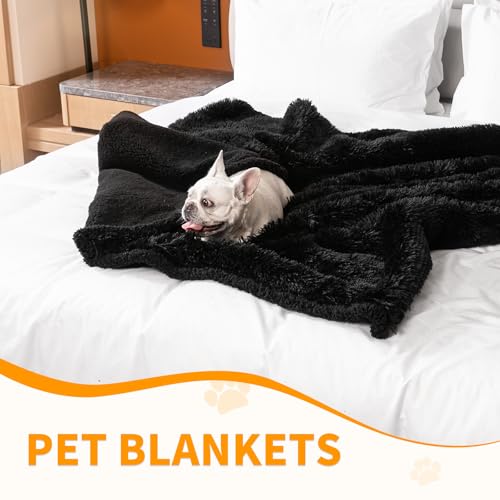 Black Pet Calming Couch Throw Blankets for Dogs Waterproof Dog Blanket Fluffy Long Faux Fur for Little Dog Cat Puppy Mat Washable(Black,XS-28 * 20in)