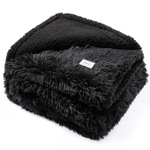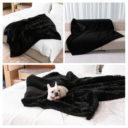 Black Throw Blanket:the upper side of the blankets are made of long faux fur and the bottom side are made of sherpa fleece,with the waterproof inner lining, these blankets can not only provide a dry and comfortable environment for your puppy and kittens, but also prevent liquids event,save you away from the troubles