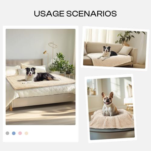 USAGE: Protects furniture from scratching and pet hair, keep couch or bed from dirt. Cute and Lovely, Beige/Grey Color Design. No Pilling, Skin Friendly,Perfect for the Couch or Inside Pet Carrier.