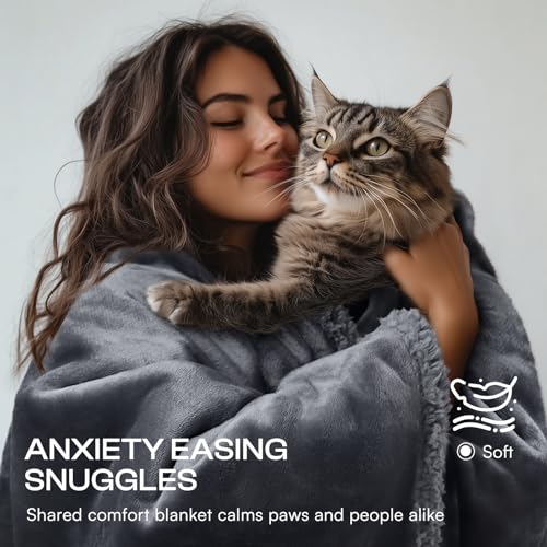 WARM AND COMFORTABLE – Thick and durable pet blanket made of layered warm Sherpa and soft fleece. No pilling, skin-friendly.Perfect for the couch or inside a pet carrier. Keep your pets warm and cozy to lounge and nap all year round.