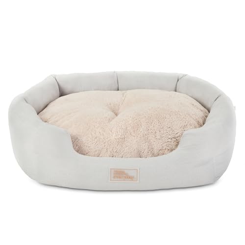 TOWN & COUNTRY EVERYDAY CuddleTown Faux Linen Comfy Cozy Cuddler Pet Bed, Supportive & Calming, Non-Slip Bottom, Machine Washable Cover, Grey, Small 22″x20″x7″