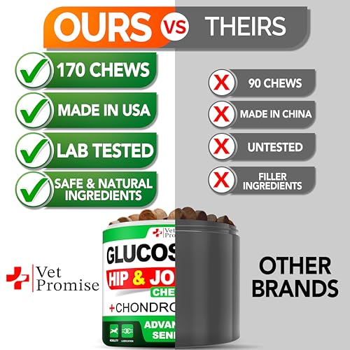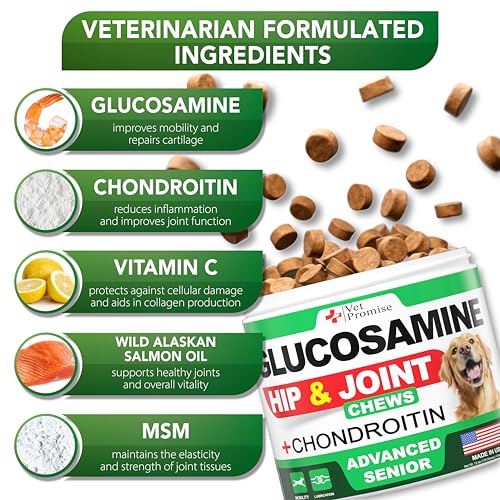 Advanced Glucosamine for Dogs – 170 Chews – Senior Hip and Joint Supplement for Dogs – Glucosamine Chondroitin – Dog Joint Health Pain Relief Pills – MSM – Mobility Support Supplement – Made in USA