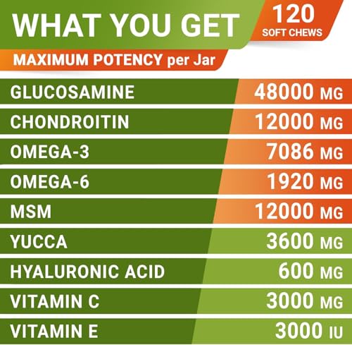 Proven Excellence: For years, our dog glucosamine and chondroitin supplement for large dog has been advancing canine wellness. Leading as one of the best hips & joints supplements to help with joint pain relief and extend active years for old paws.