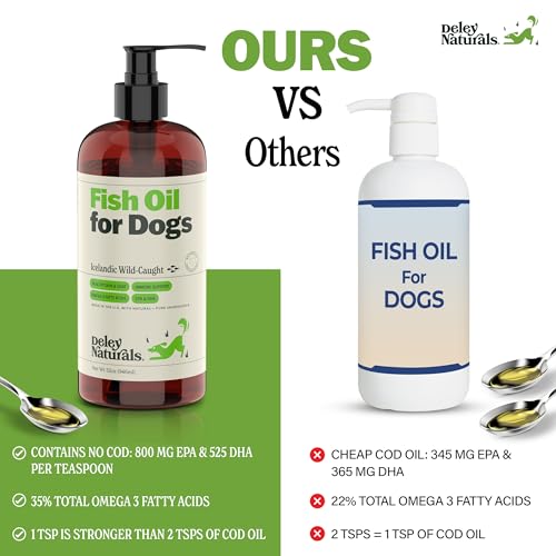 Deley Naturals Dog Fish Oil Icelandic 2X Omega – Dog Itching Skin Relief with Omega 3 6 9 for Allergies, Coat & Heart – Omega 3 Fish Oil for Dogs Skin Irritation – 32oz Omega Oil for Dogs Made in USA