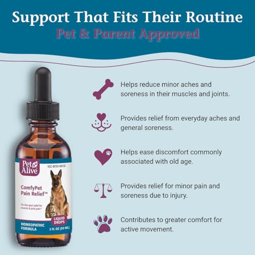 PetAlive ComfyPet Pain Relief for Dogs & Cats – Natural Homeopathic Supplement for Pet Joint & Mobility Support – 2 fl oz Drops – Made in USA