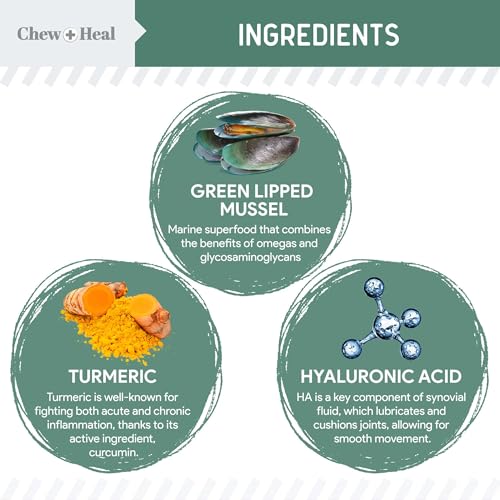 Green-lipped mussels, yucca schidigera, turmeric, and omega-3 fatty acids help support joint health by reducing inflammation and improving mobility.
