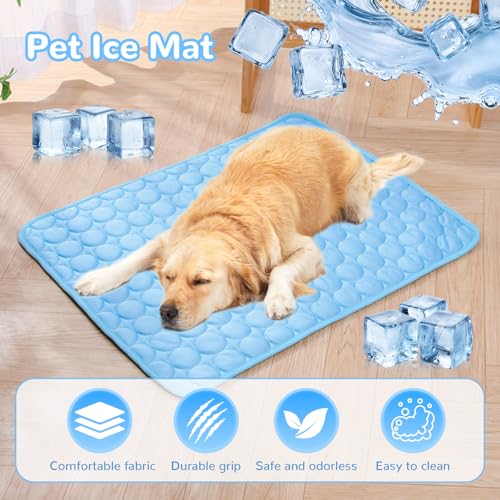 2025 New Dog Cooling Mat, Pet Cooling Mats, Summer Cool Pads Pet Mat Outdoor for Dogs & Cats, Pet Bed Mats Machine Washable(Blue, XL: 100×75 cm 39×30″)