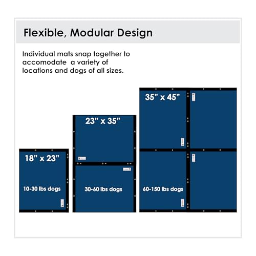 ROBUST AND MODULAR Made with rip-stop materials, for use indoors or outdoors. Each mat has snaps on three sides to connect multiple mats for larger dogs. Mat cover is machine washable