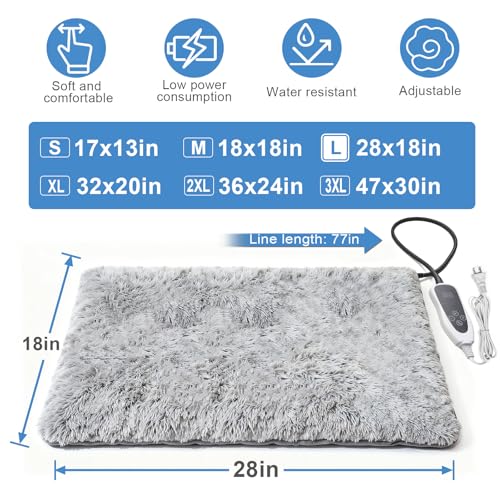 Dog Heating Pad 28×18 in with Smart Thermostat Switch and Power Line Protection Tube,Obtained MET and UL Dual Certification,Waterproof Puppy Heating Pad- Gray