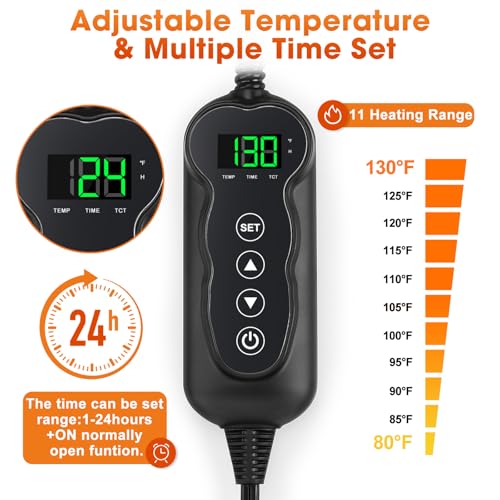 🐶【11 Adjustable Temperature levels】GASUR Pet Heating Pad has 11 levels adjustable temperature setting( 80-130℉/30-55℃). Just preset the proper temperature and create a warm and cozy nook for your furry baby. The built-in dual temperature sensor accurately monitor temperature to prevent overheating.