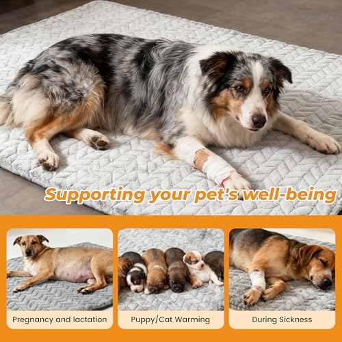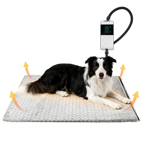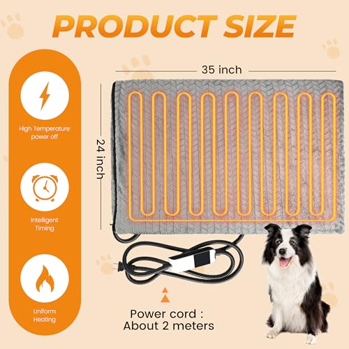 PatiencET Heated Dog Bed, 24” x 35” Temperature Adjustable Cat Dog Heating Pad with Timer Indoor, Pet Heating Pad for Cats Dogs, Cat Dog Warming Pad Bed with Metals Chew Resistant Cord