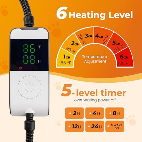 Safety & Quality Cord: Priority is your pet’s safety. Our animal heating pad boasts UL-certified PVC heating wires and a thermostat, ensuring robust overheat protection for pets’ safety. The 2-meter power cord includes a metal anti-bite tube and is wrapped in waterproof, flame-retardant PVC, blending style with functionality for long-lasting use.