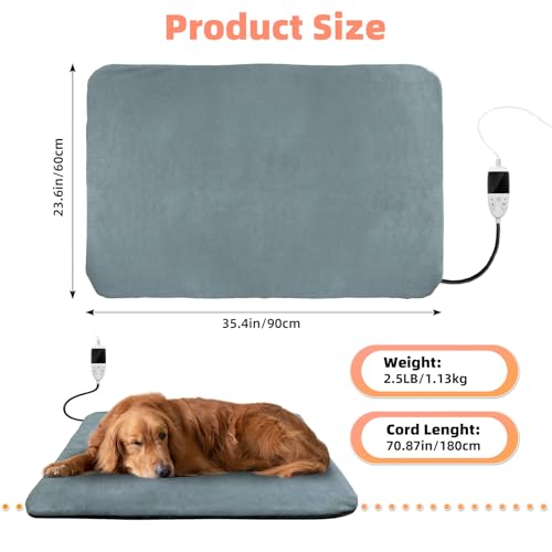 SmartTail 35.4 x 23.6 in Large Dog Heating Pad, Upgraded 12 Timer and Keep on Mode Heated Bed for Pet with Chew Resistant Cord Machine Washable and Adjustable Temperature