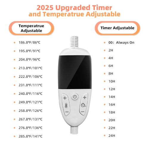 2025 Upgraded Timer and Temperatrue Adjustable:13 temperature settings (0-24 H,increase 2H per level) and 12 temperature adjustments (186.8℉-285.8℉,increase 5℉ per level).It has Has always-on mode.The LED screen can display temperature and time, and you can adjust the temperature and time you want at any time.The inner mat is flame retardant to prevent accidents, please feel free to use it