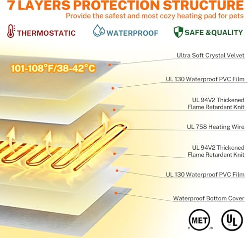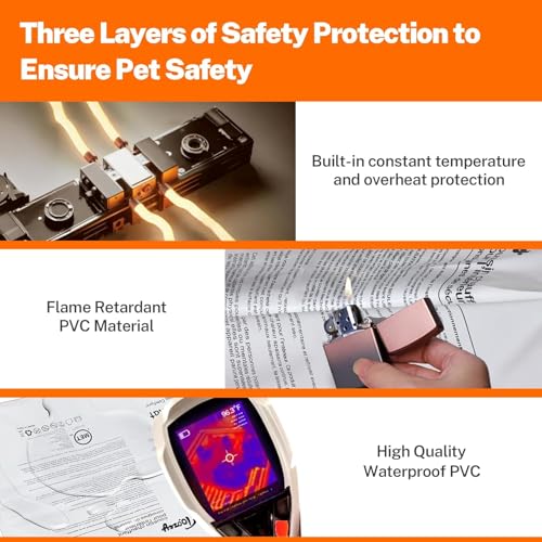❤【SAFETY AND SECURE STRUCTURE】Multi-layer protection structure with UL-certified heating wire protects pets from burns. Soft PVC envelope with waterproof and flame retardant function. Built-in intelligent temperature sensor in the pet heating pad to prevent overheating and spontaneous combustion and protect your pet, which is very safe for you and your pet.