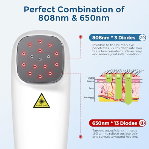 【Safe & Non-Invasive】This device has a perfect combination of 13x 650nm diodes and 3x 808nm diodes.