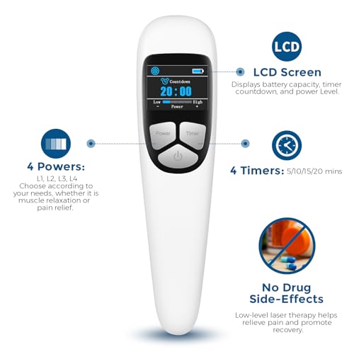 Cold Laser Therapy Device for Dog Veterinary, Handhold, Low Level Laser Red Light Therapy for Human Pain Relief Knee, Joint, Muscle, 4 Power/4 Timer, 3X 808nm + 13x 650nm