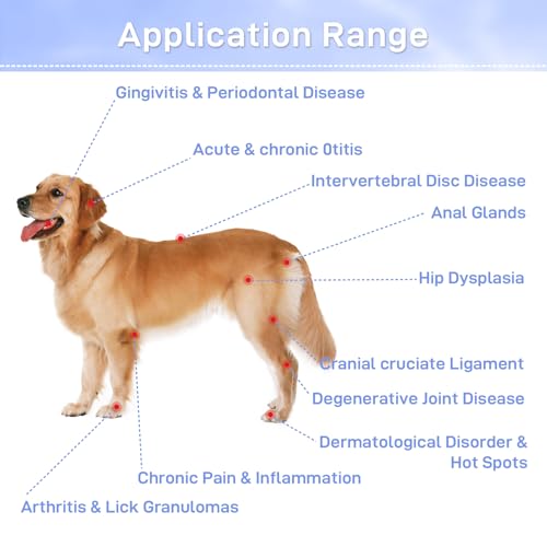 【2024 ENHANCED COLD THERAPY DEVICE】 – The therapy for dogs 2024 new design build in 13x650nm and 4x808nm beam, more holes and better treatment results. The 650nm red improves blood circulations and reduces inflammation, the 808nm targets the pain relief in the deep area, the 808nm+650nm treatment combined will show curative effects for pain relief